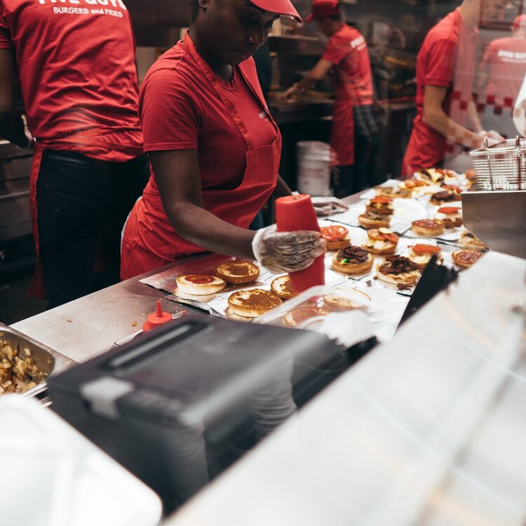 At Five Guys, everything’s cooked fresh from scratch. No freezers. No microwaves. No timers. No can-openers.