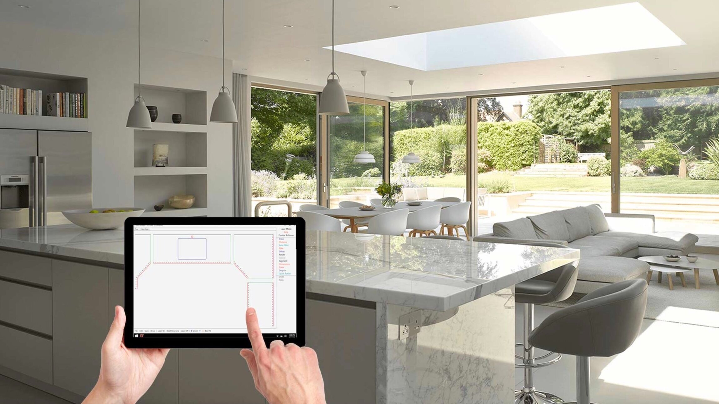 Our craftsmen use these digital laser templates in our workshop to manufacture your worktops. We use the latest state-of-the-art technology, ensuring a perfect fit is achieved on-site within 2 weeks.