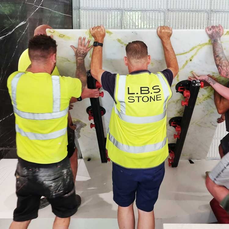 • Handling – Stone is very heavy and requires careful handling. Our installation team understand how to handle large stone slabs with care, minimising the possibility of breakages and damage while transporting and installing your stone finishes.